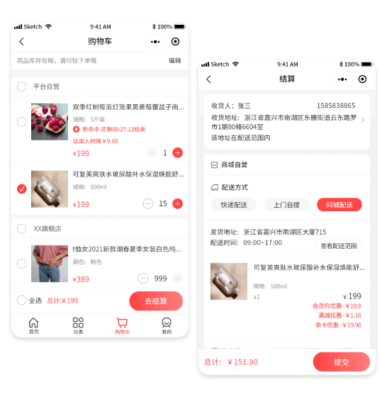 快递发货、到店核销、同城配送