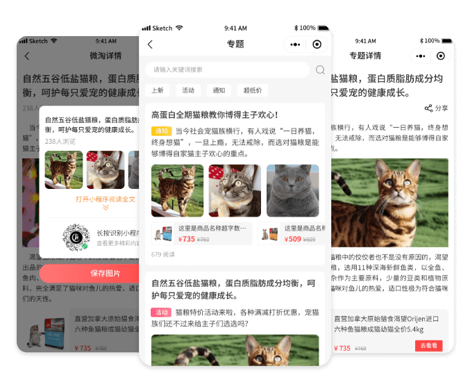支持添加商品,实现内容转化