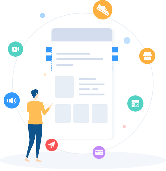一键添加装修组件,自由组合,拖拽式布局,满足各个商家的不同需求