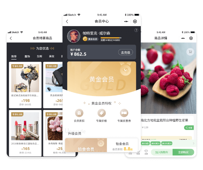 不同等级的会员,享受不同的会员价/会员折扣